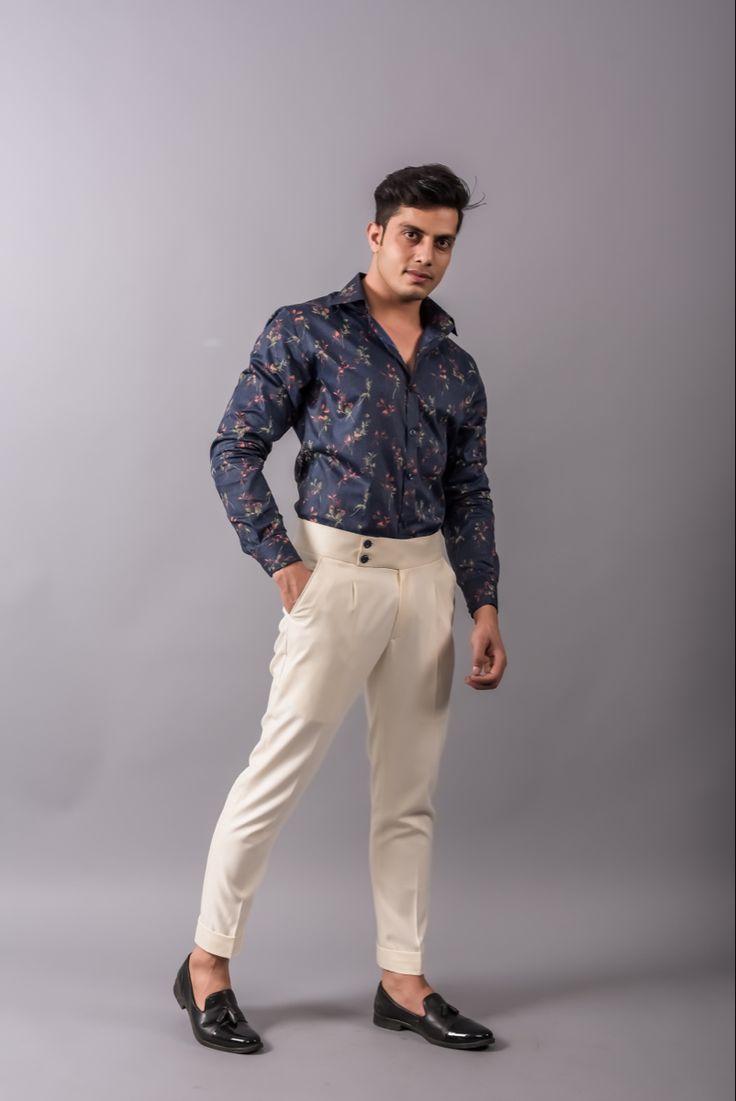 The printed shirt and solid trousers combo is one of the most versatile and stylish looks a man can wear, striking the perfect balance between boldness and sophistication. Printed shirts, with their patterns ranging from subtle geometrics to floral or abstract designs, add a touch of personality and flair to your outfit. Pairing them with solid trousers ensures the look doesn’t become overwhelming, as the neutral base tones down the vibrancy of the print while maintaining a sharp, well-put-together appearance. This combination works seamlessly for both casual and semi-formal occasions. For a day out, you can go for a light-colored printed shirt with beige or navy trousers, paired with loafers for a relaxed yet stylish vibe. For an evening setting, darker prints with black or charcoal trousers elevate the outfit, especially when matched with polished shoes and a sleek belt. The beauty of this pairing lies in its flexibility—printed shirts let you express individuality, while solid trousers ground the look with elegance. Whether you’re dressing for a brunch, office party, or even a casual dinner, this combo makes a strong impression. It’s modern, balanced, and effortlessly fashionable, proving that style can be both expressive and refined.